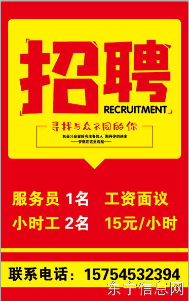 招聘服务员1名 小时工2名15/一小时