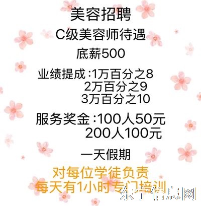【招聘美容师】 本店因业务发展需要,现..
