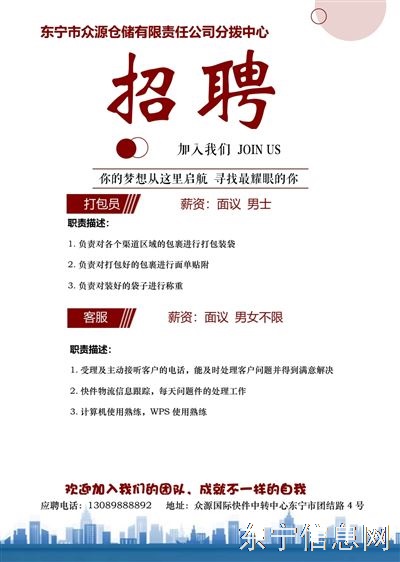 招聘打包员。招聘客服。
